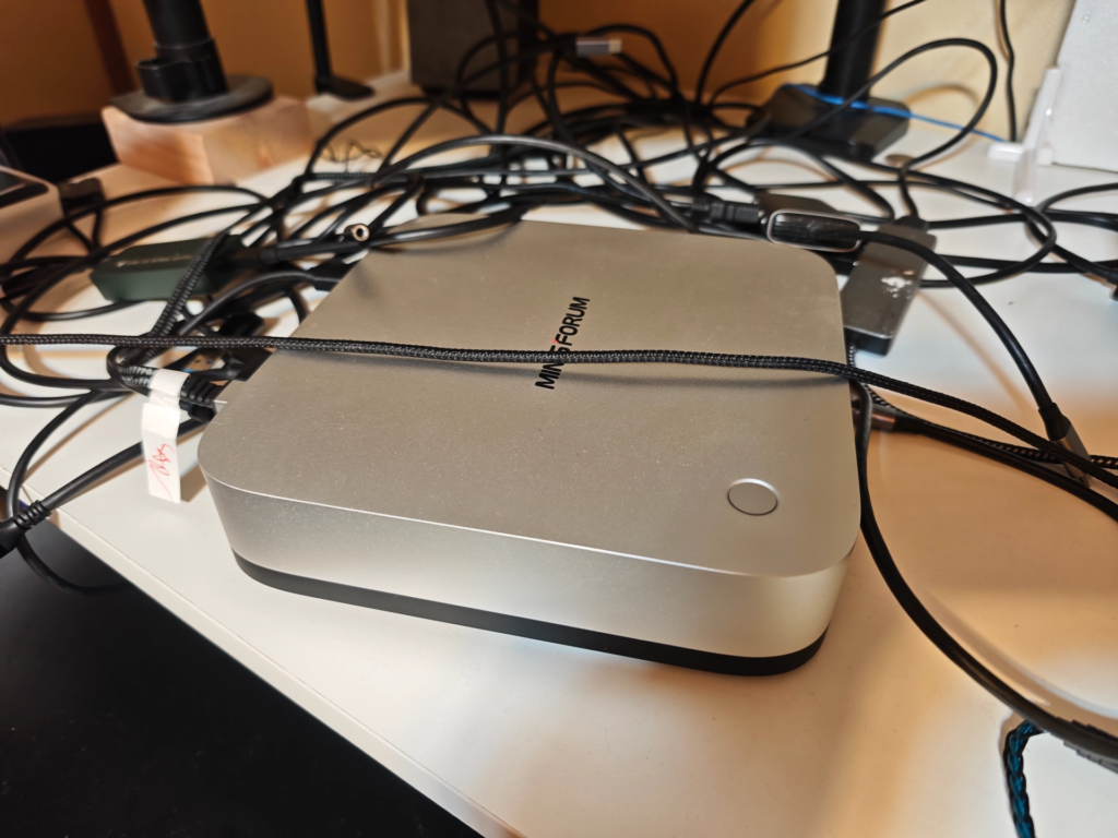 検証のために使ったミニPCは、現在Minisforumさんから製品レンタルをいただいているMINISFORUM AI X1 PRO-470のベアボーンに、16GBメモリ1枚と2TB SSD1枚を搭載したものです。