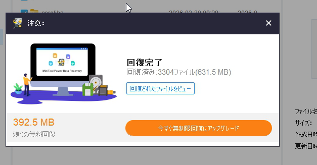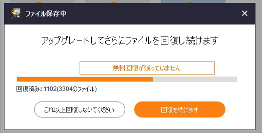 しかし、無料版のため容量不足で復旧できたかわかりませんでした。