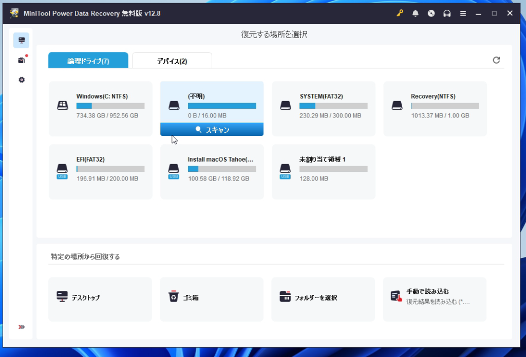 今回はその中でも、MiniTool Power Data Recovery無料版に絞って、実際の使用感を確認していきます。