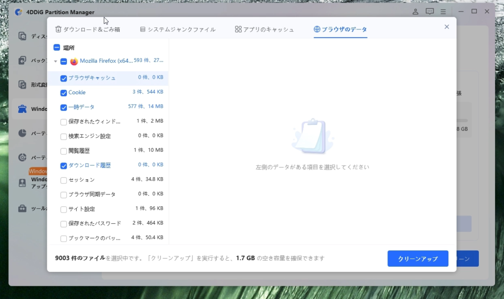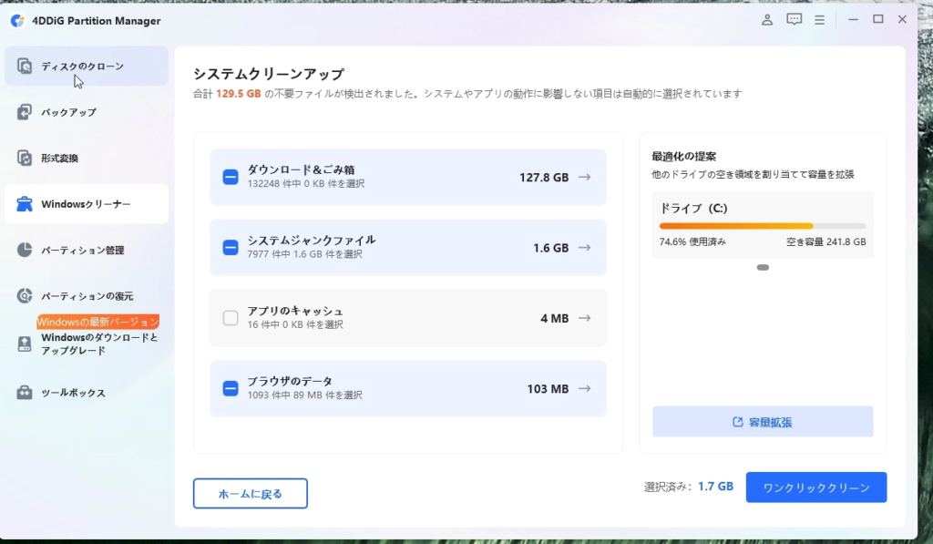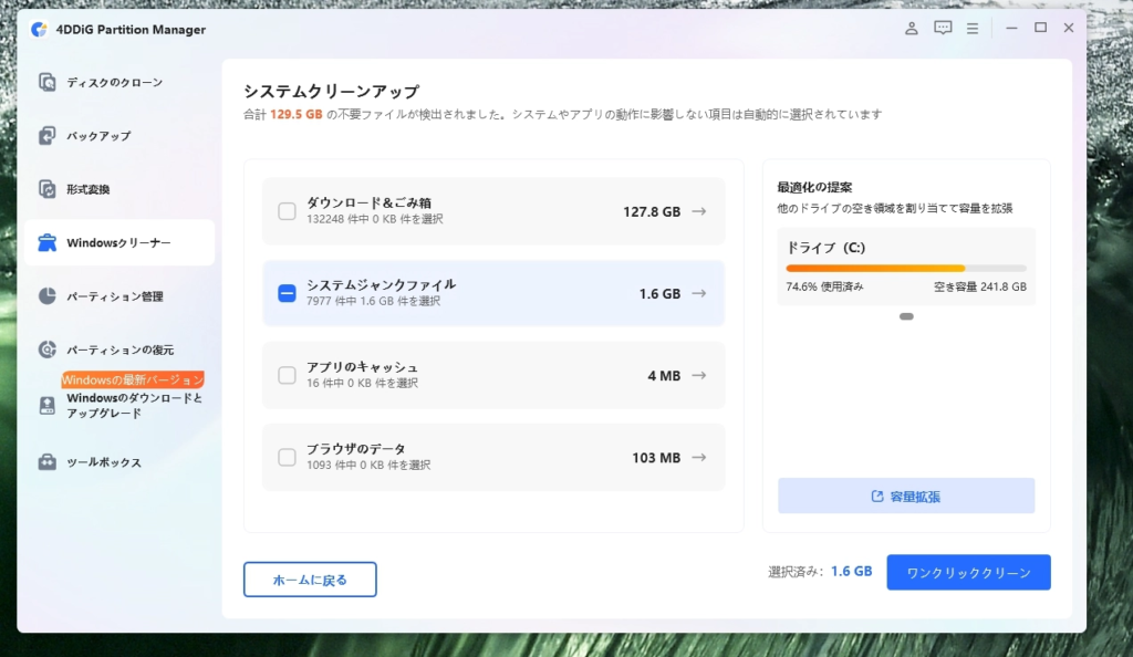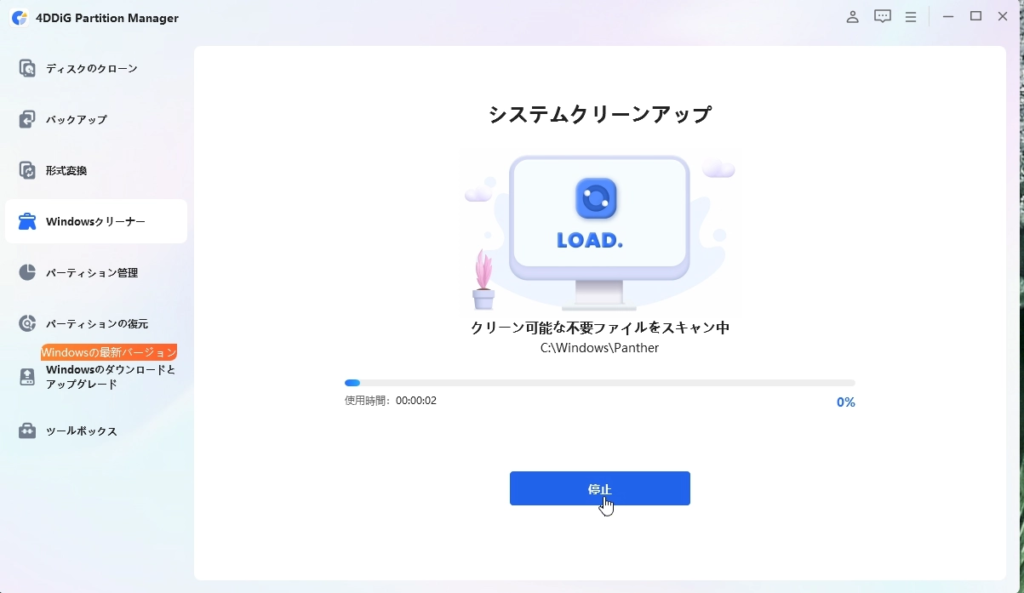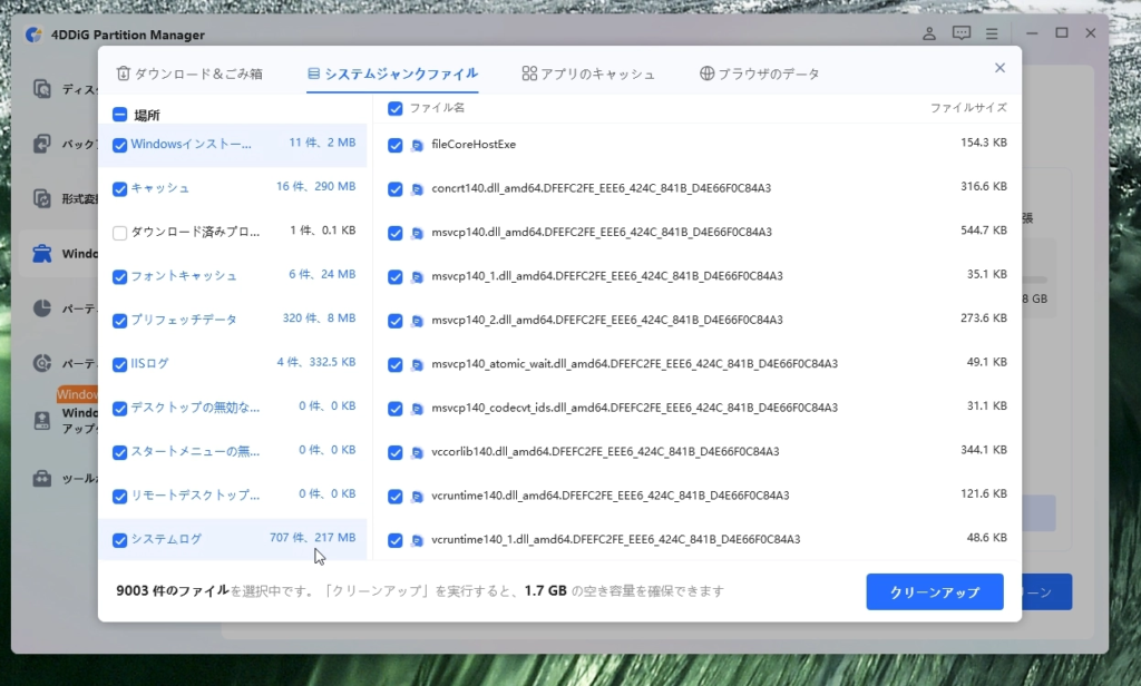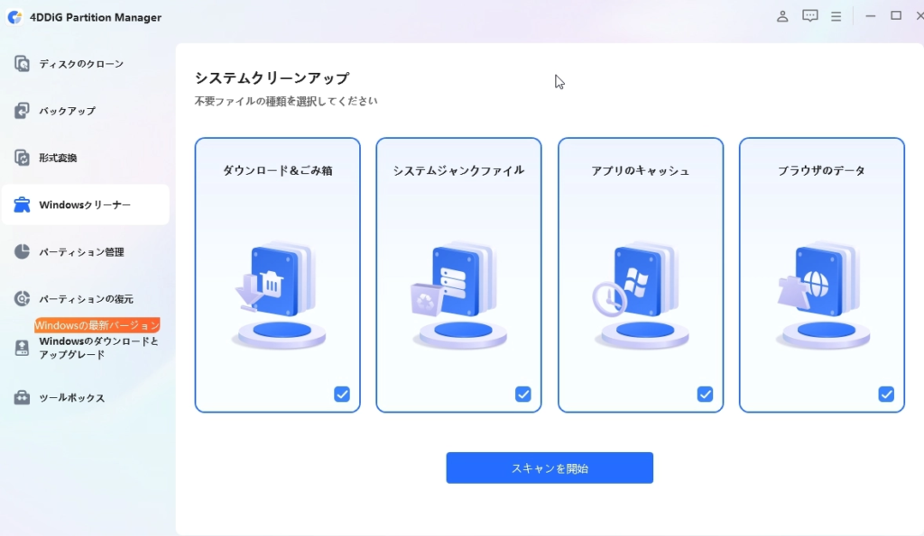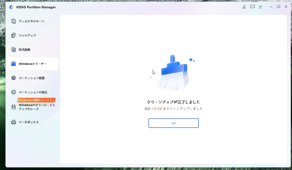 4DDiG Partition Managerの「Windowsクリーナー」機能