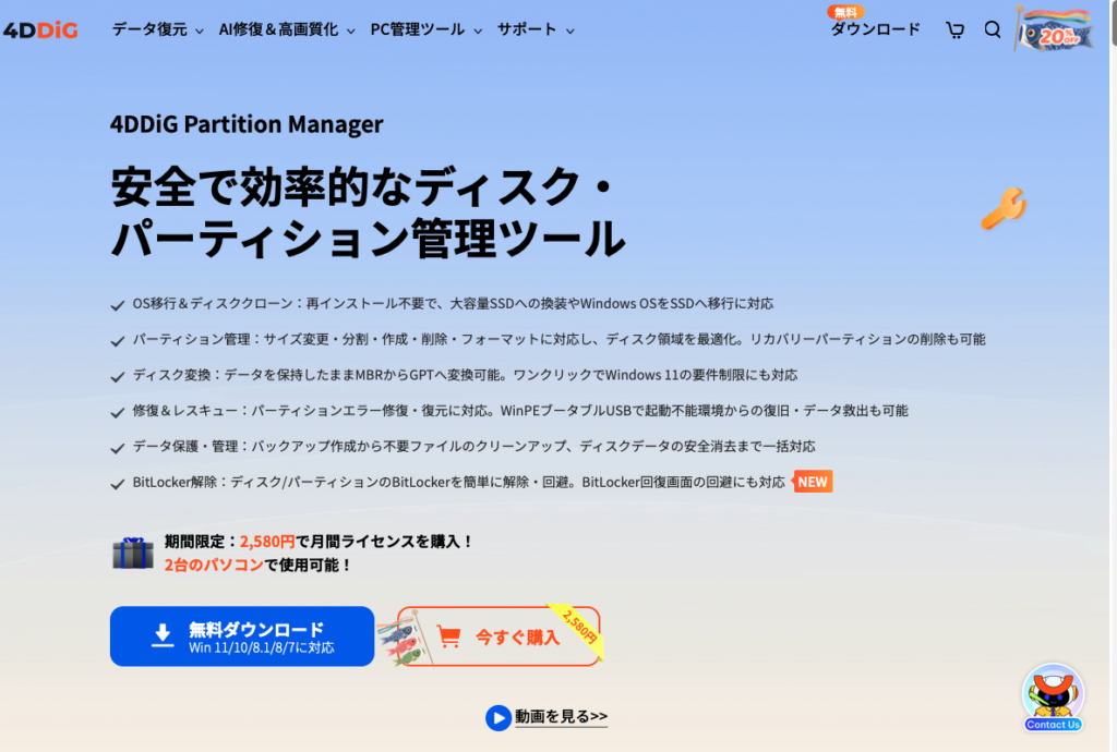 購入ページ: https://4ddig.tenorshare.com/jp/buy-4ddig-partition-manager.html